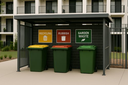 - Apartment blocks with communal external waste storage areas, or where an absence of infrastructure results in bins being stored on driveways or grass.